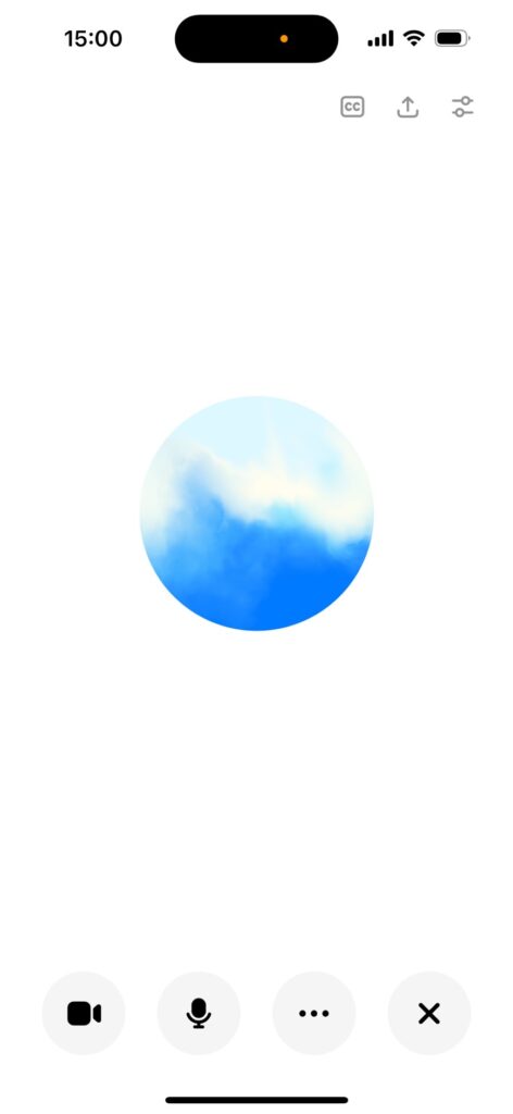 マイクボタンを押すと、このような画面となり、AIと会話をすることができます。