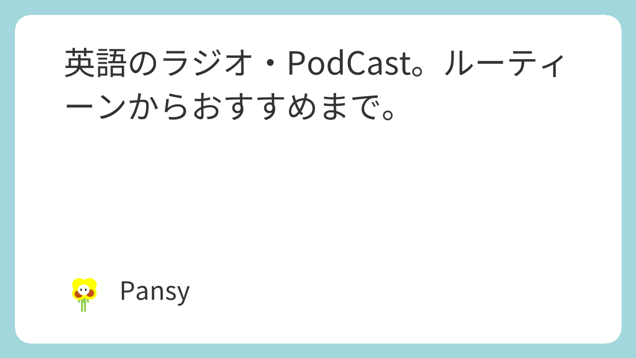 聞き流しにも便利ですが、PodCastをよく聞くようにしています。