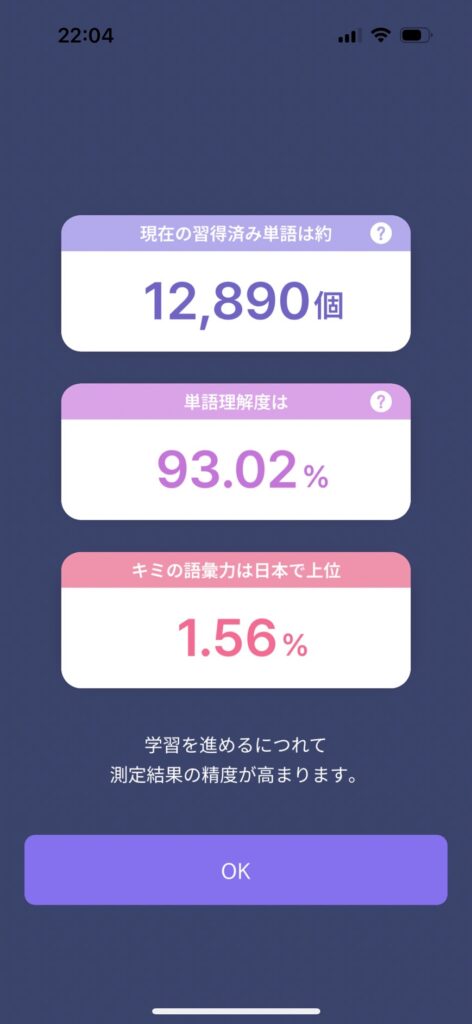 学習を進めていくと、自分のおおよその語彙力を測る事ができます。