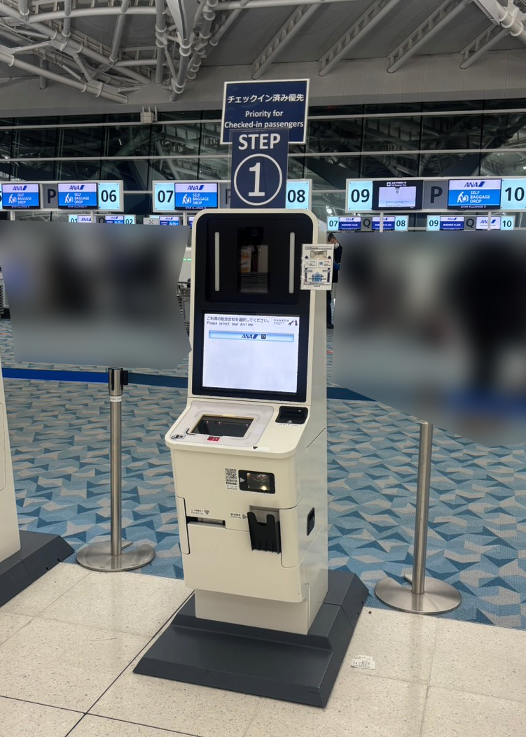 今回はチェックインはこちらの機械で行いました。事前に予約したチケットを発行します。