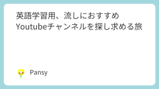 インプット 英語学習用、流しにおすすめYoutubeチャンネルを探し求める旅 PansyYoutube上には様々な英語学習に適したチャンネルや動画がたくさんあります!わたしがなんとな~くよく視聴するものを紹介します。(もしおすすめがあれば、教えていただけると嬉しいです。)Youtubeは本当に便利ですね。英語学習Yo... 2025.09.02 インプット動画で英語学習