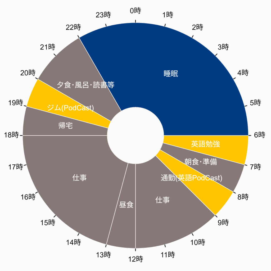 わたしの平均的な一日(平日)のサイクルを見ると上図のような時間配分になります。